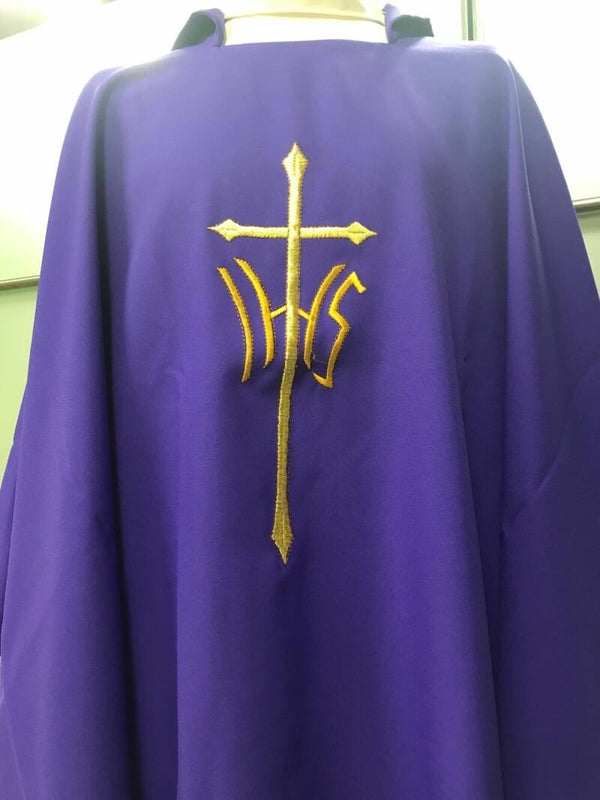 CASULA IN TESSUTO POLIESTERE 100%, RICAMO FRONTE/RETRO COMPLETA DI STOLA