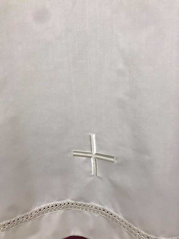 TUNICA IN MISTO LANA , 45%LANA, 55% POLIESTERE, CON CERNIERA SULLA SPALLA, COLOR AVORIO, CON RICAMO SUL FONDO E SULLE MANICHE, CM 140
