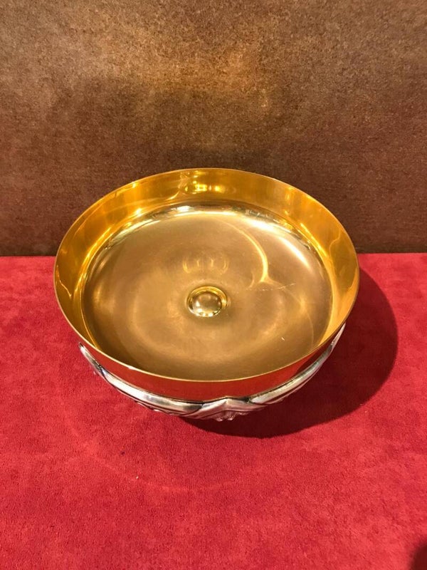 PIATTO PATENA ARGENTATO CON BASE LAVORATA, H 9 CM E DIAMETRO CM 16
