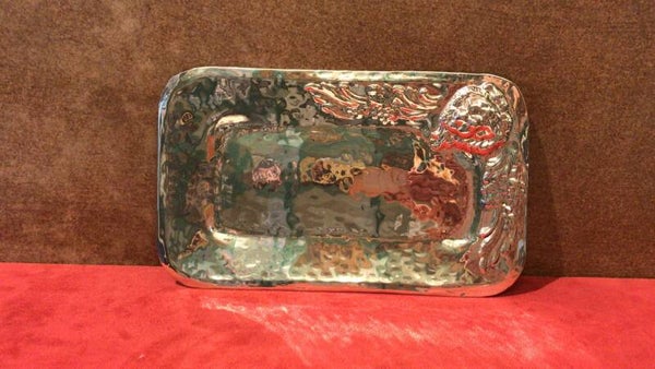 PIATTO COMUNIONE RETTANGOLARE IN ARGENTO LAVORATO CM 25,5 X 15 CM