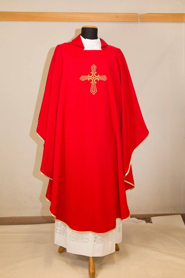 CASULA IN TESSUTO 100% POLIESTERE LEGGERISSIMO, RICAMO FRONTE/RETRO COMPLETA DI STOLA